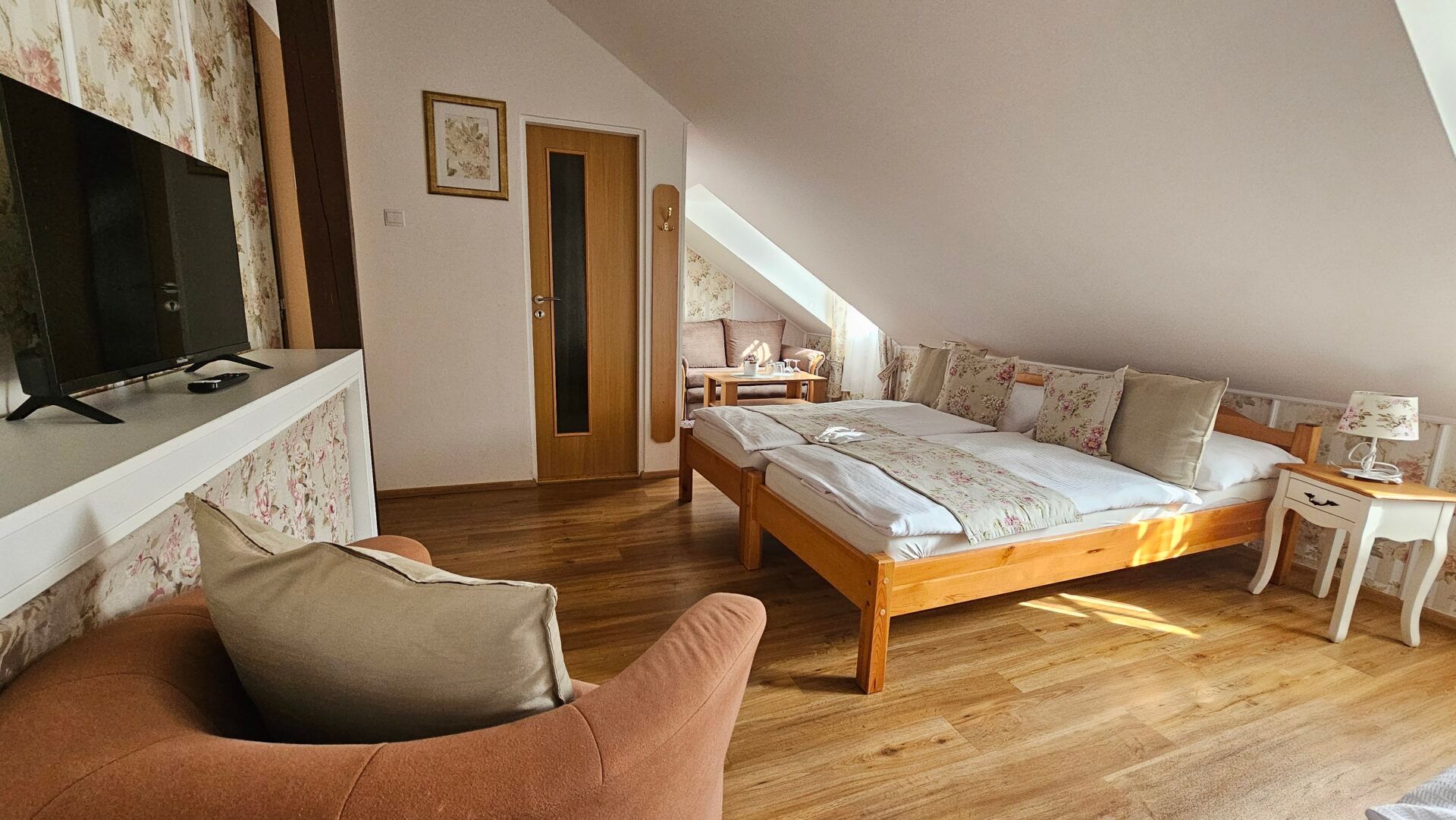 Dvou až čtyřlůžkové nekuřácké pokoje s přistýlkou, SWC, TV a ledničkou.