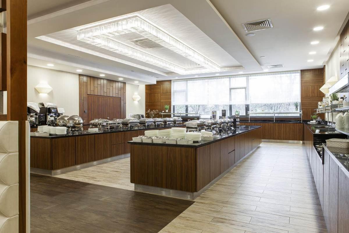 V hotelové restauraci, která se specializuje na mezinárodní kuchyni, se každé ráno podává pestrá snídaně formou bufetu.