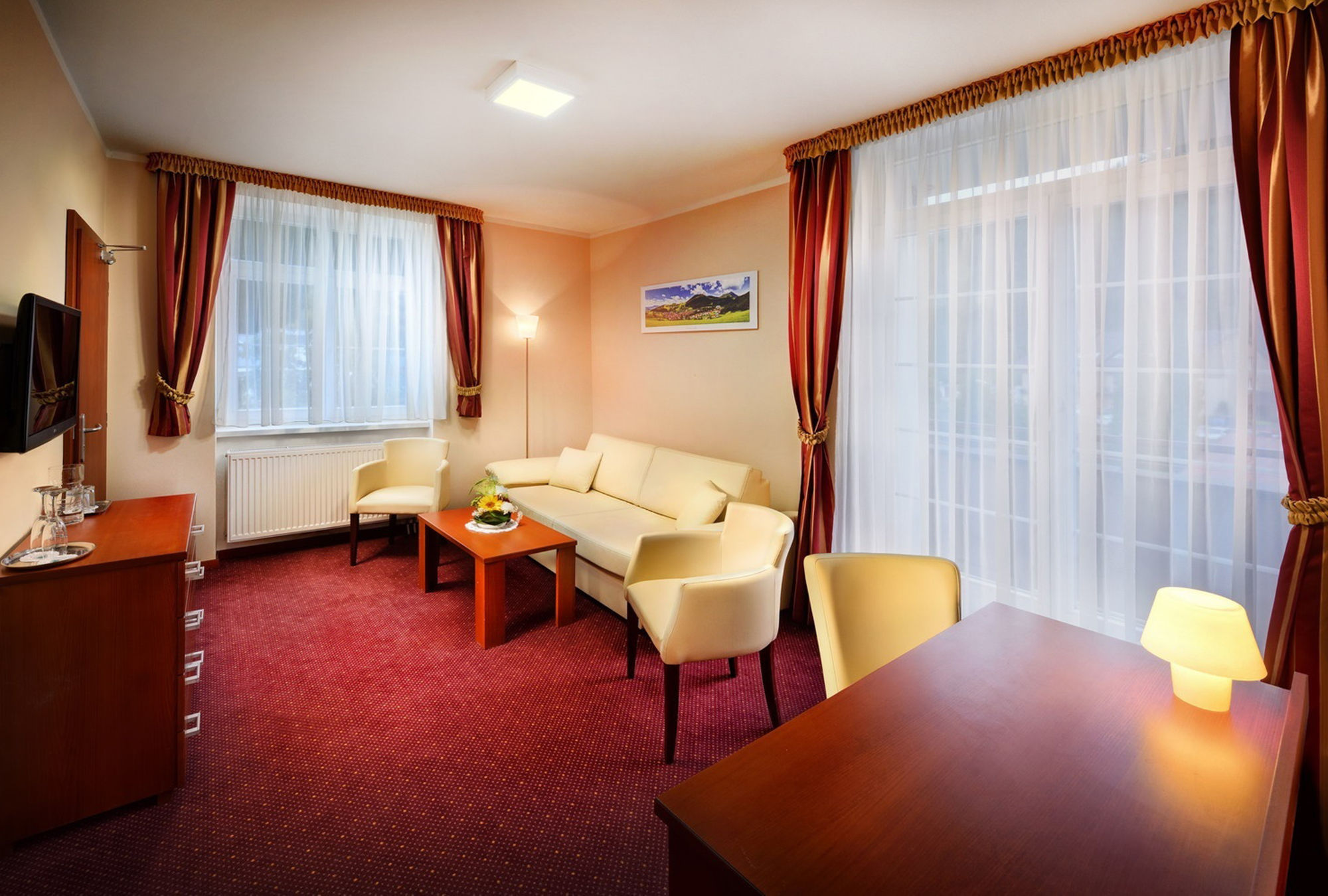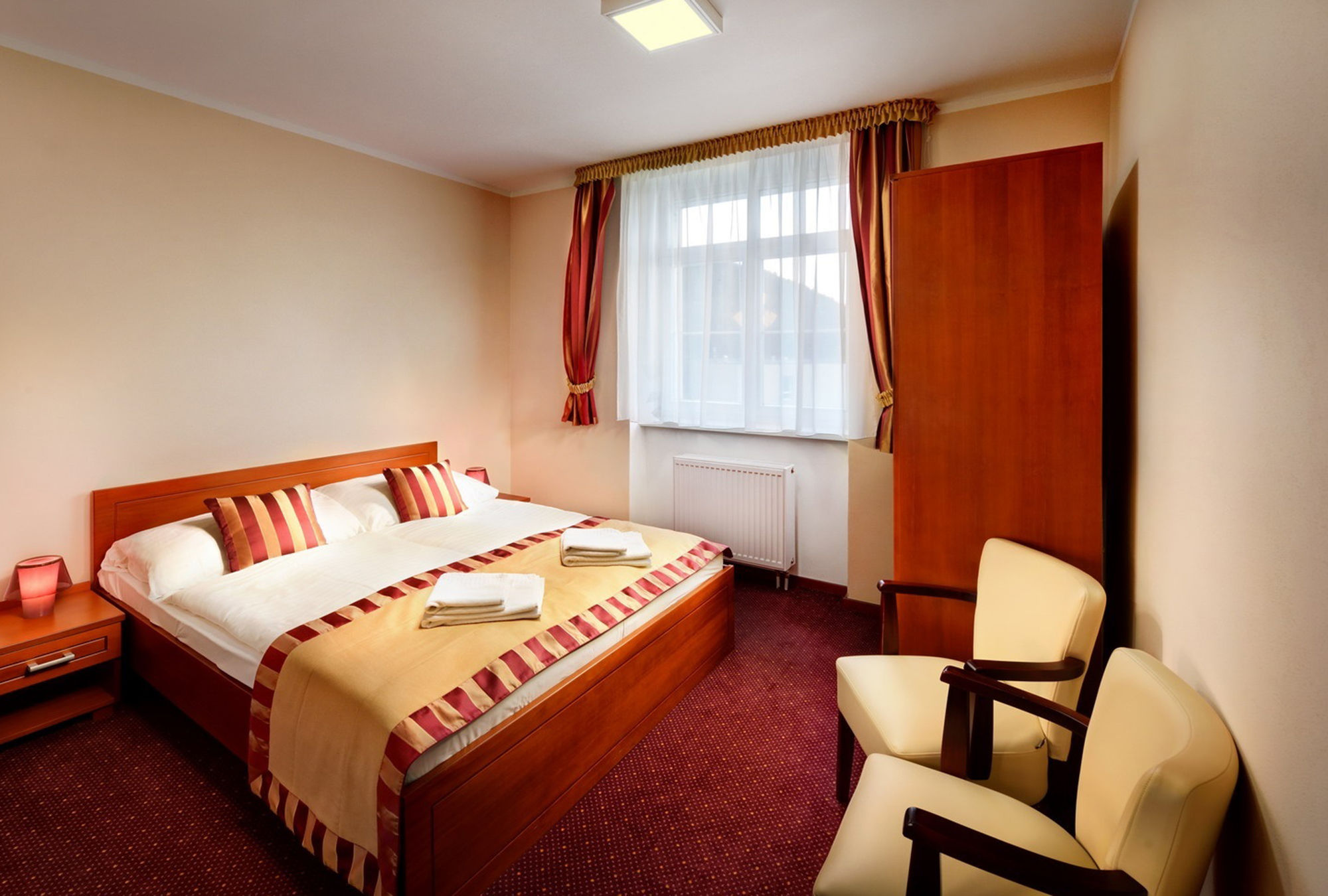Vybavení pokoje: koupelna (sprchový kout, WC), kabelová TV, chladnička, telefon, radiobudík, trezor, fén, Wi-Fi zdarma