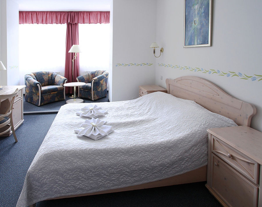 Dvoulůžkové pokoje bez možnosti přistýlky (typ I.) i s možností přistýlky (typ II.) jsou vybaveny SWC, TVSAT, telefonem, minibarem a trezorem.