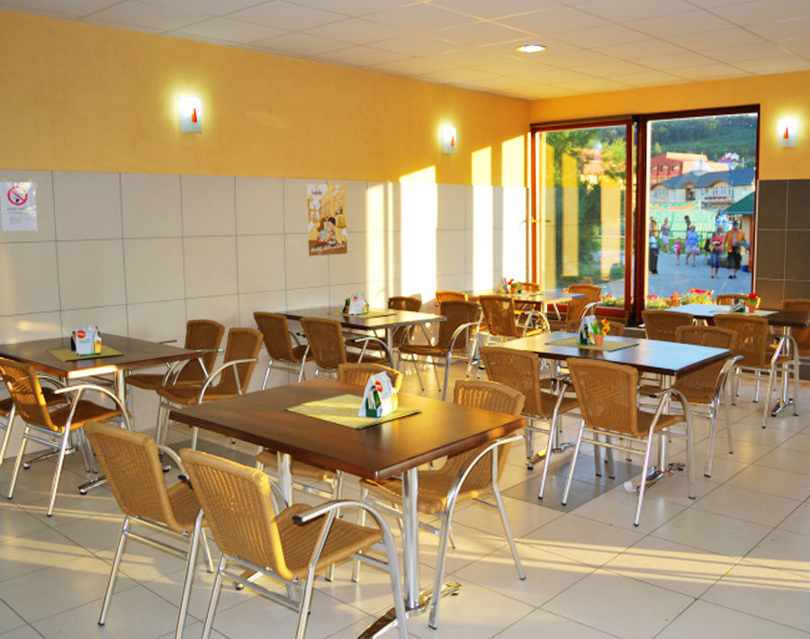 Na střeše objektu se nachází otevřená terasa s výhledem na široké okolí. Posedět s přáteli si hosté mohou ve stylové zimní zahradě.