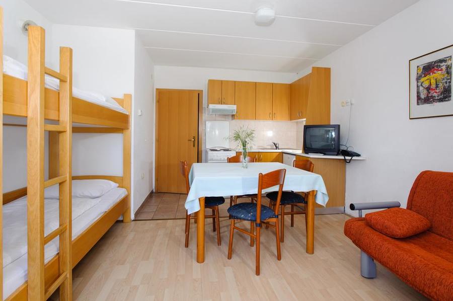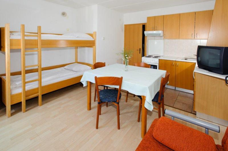 Bungalovy (studia) mají TV, telefon, vlastní koupelnu (WC, sprchový kout), kuchyňská linka, jídelní stůl, pohovka a poschoďová postel.