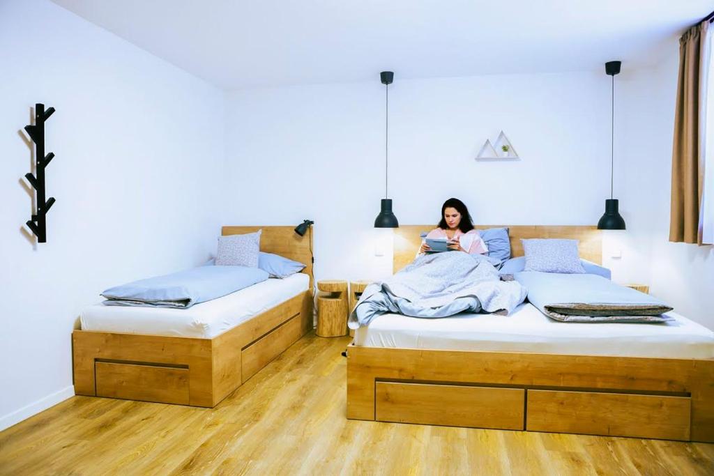 Celkem 8 moderně pojatých apartmánů (studia, varianty 50 m² i menší mezonety), všechny pro max. 6 osob a vybavené kvalitními matracemi a antialergenním lůžkovým prádlem. Každý apartmán má plně vybavenou kuchyni, chytré úložné prostory, TV, Wi‑Fi.
