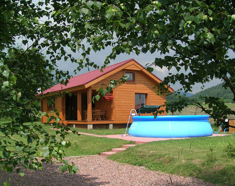 Zcela nová chata disponuje obývací místností s TVSAT a kuchyňským koutem (plně vybaveným), koupelnou s WC a terasou. U objektu je bazén (pouze pro tuto chatu) a venkovní posezení s krbem a ohništěm. K dispozici je také zahradní nábytek k venkovnímu použití.