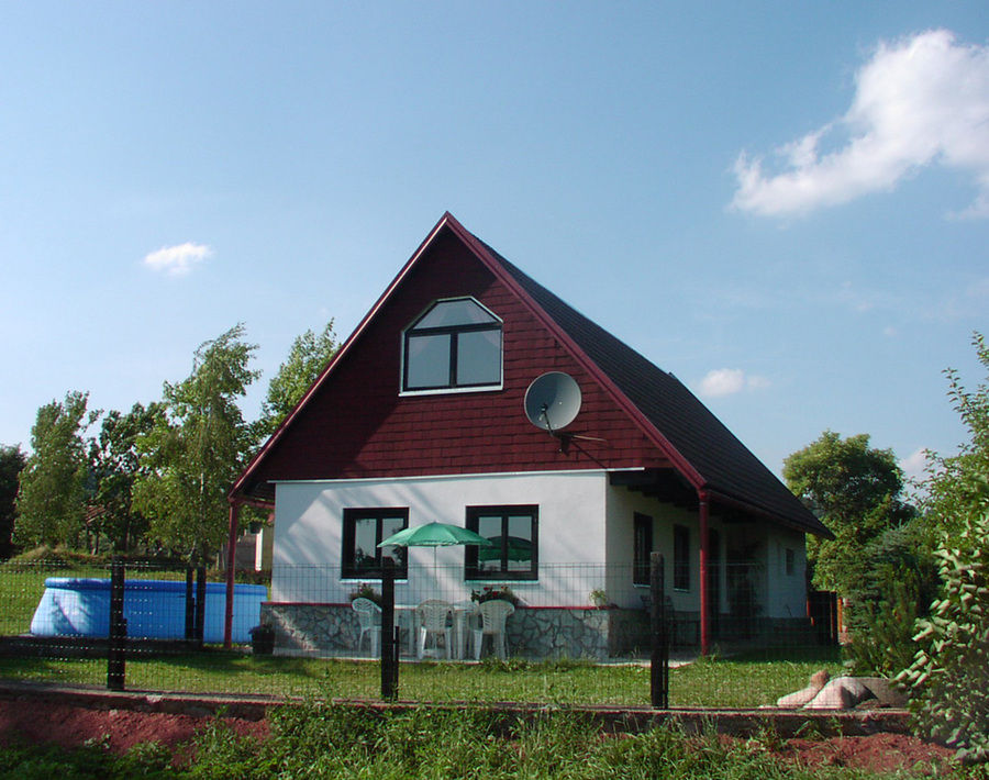 Komfortní chata disponuje obývací místností s TVSAT a krbem, velkou vybavenou kuchyní a koupelnou s WC. U objektu je bazén (pouze pro tuto chatu) a venkovní posezení s krbem a ohništěm. K dispozici je také zahradní nábytek k venkovnímu použití.
