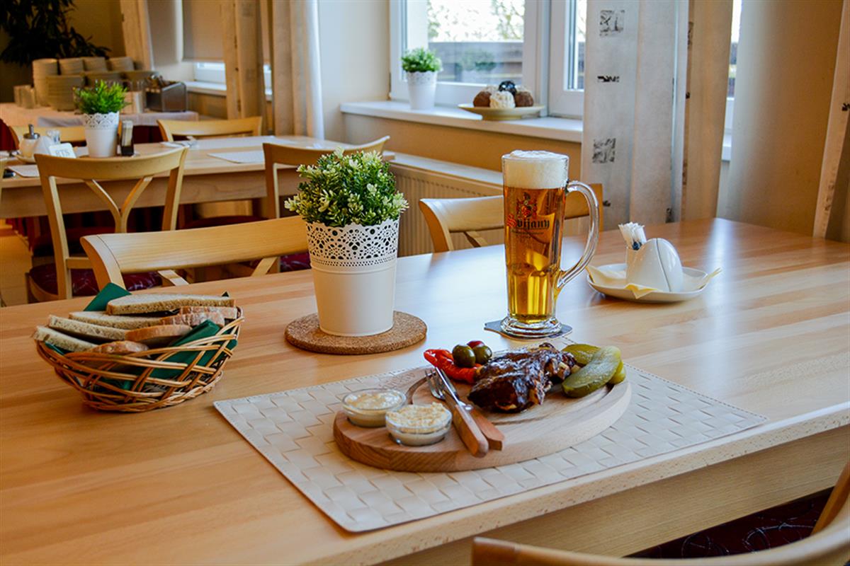 Hosté se mohou těšit na bohaté snídaně formou bufetu a tradiční českou kuchyni v hotelové restauraci. V nabídce nechybí ani domácí speciality a jídla z čerstvých regionálních surovin. Možnost polopenze či plné penze.